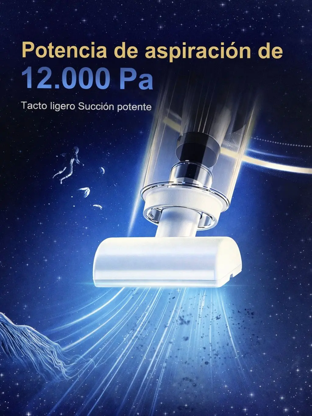 Alta potencia de succión: Motor de 120W con fuerza de hasta 12.000Pa para eliminar polvo, migas y suciedad con facilidad.