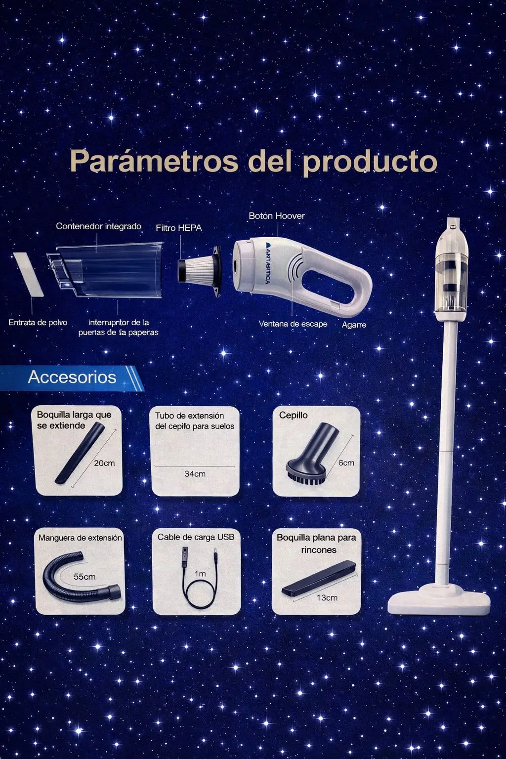 Filtro HEPA lavable: Retiene partículas finas y alérgenos, garantizando una limpieza más profunda.